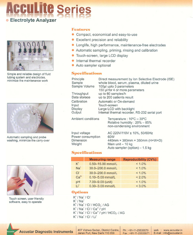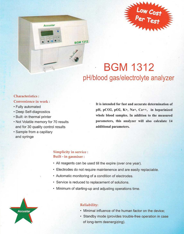 - Measured Parameters – pO2, pCO2, pH, K+, Na+ & Ca++
